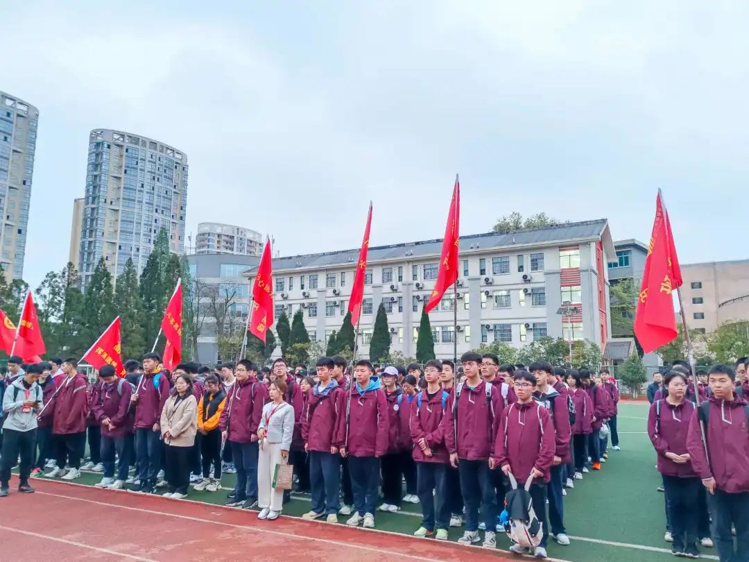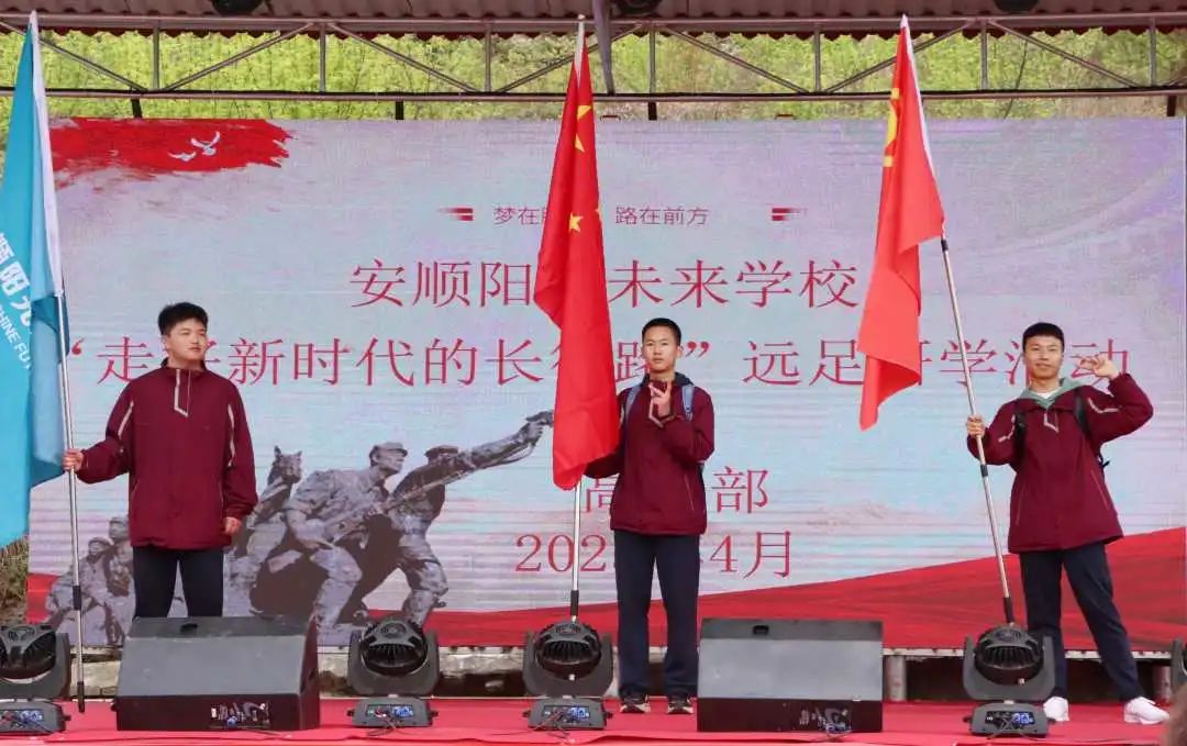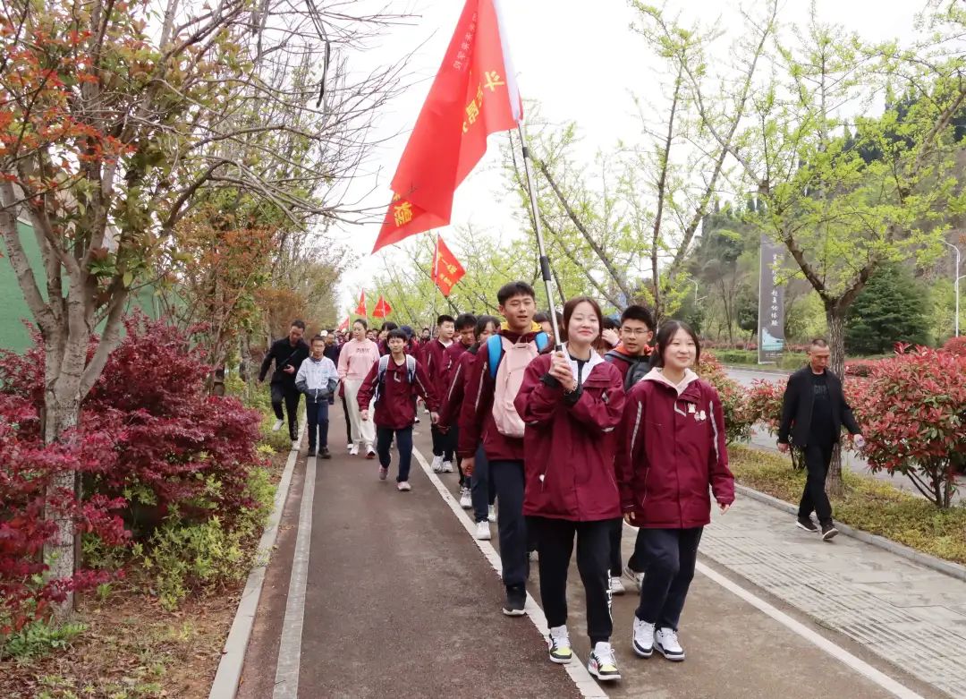 為發(fā)揚(yáng)中華民族吃苦耐勞、堅(jiān)韌頑強(qiáng)的優(yōu)良傳統(tǒng);培養(yǎng)學(xué)生熱愛自然、保護(hù)環(huán)境、團(tuán)結(jié)友愛的品質(zhì);磨礪學(xué)生正視困難、挑戰(zhàn)困難、戰(zhàn)勝困難的勇氣和毅力;激勵(lì)學(xué)生走進(jìn)自然、體驗(yàn)生活、感悟人生、陶治性情。我校高中部近日開展“走好新時(shí)代長(zhǎng)征路”學(xué)生遠(yuǎn)足活動(dòng)。 行程路線為安順陽(yáng)光未來(lái)學(xué)校→虹山湖路→武當(dāng)路→定安大道二環(huán)路→黃果樹機(jī)場(chǎng)→安飛路→阿寶糖莊園→黔中快捷理論考場(chǎng)→農(nóng)耕莊園。 01啟程-號(hào)角吹響 此次活動(dòng)高一高二全體學(xué)生、班主任、部分教師、家長(zhǎng)自愿參與,路程來(lái)回約80華里。全體同學(xué)在操場(chǎng)集合授旗,整裝待發(fā)。以春為令,吹響青春嘹亮的號(hào)角;以春為始,邁開奮斗的步伐,讓春天的美好如期而至。